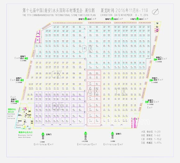 第17屆石博會展館,展館布局規(guī)劃更合理。我們規(guī)劃形成橫縱各3條主通道,這樣每一家參展企業(yè)基本上