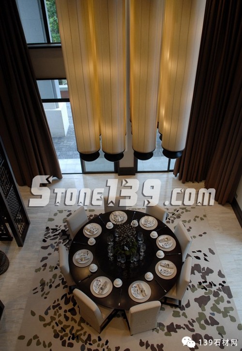 把東方傳統(tǒng)的氣韻蘊藏在寬闊開揚的大尺度的空間中,通過中國傳統(tǒng)建筑中軸對稱的平面布局和立面構(gòu)圖、中國印象的黑白色調(diào)、巨幅的線描中國山水,高聳到頂?shù)闹惺礁羝?,悉心設(shè)計的原創(chuàng)中國風家具,呈現(xiàn)現(xiàn)代中式空間的大氣場域。