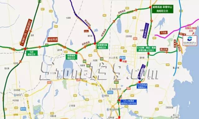 G15沈海高速(同三高速)從沈陽、上海方向來的車輛沿沈海高速---行駛至馬店樞紐立交---轉G20青銀高速(青島方向)---行駛至即墨南泉樞紐立交---轉S24威青高速(威海方向)---行駛至華山南樞紐立交---轉S19龍青高速(青島方向)---行駛至即墨東鰲山衛(wèi)出口---鶴山東路---濱海大道(海陽方向)---博覽中心