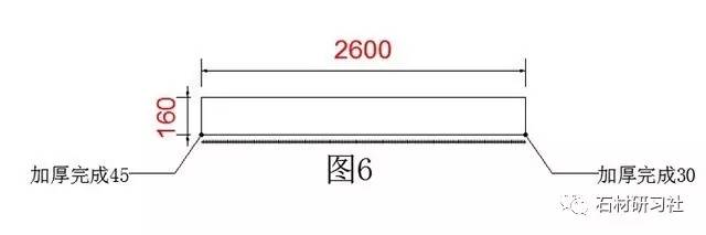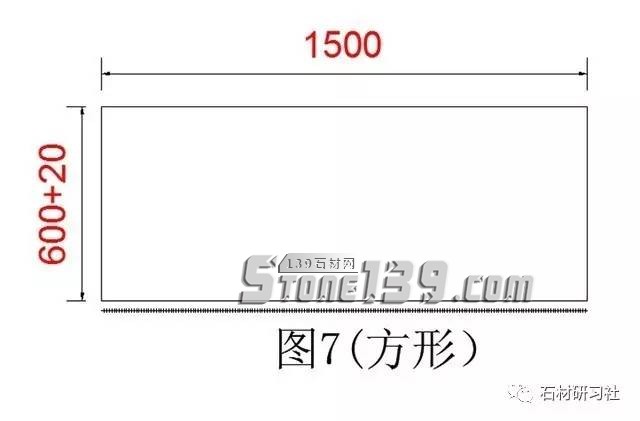 ▼第1個方形窗臺(圖7是一個方形的窗臺,600和1500是水泥的數(shù)據(jù),加20是加厚磨邊的數(shù)據(jù),這樣的好處是以后看到測量數(shù)據(jù)就明白是否已經(jīng)加厚了,有好多測量大師回去下單時,不知道是否加了尺寸沒有)